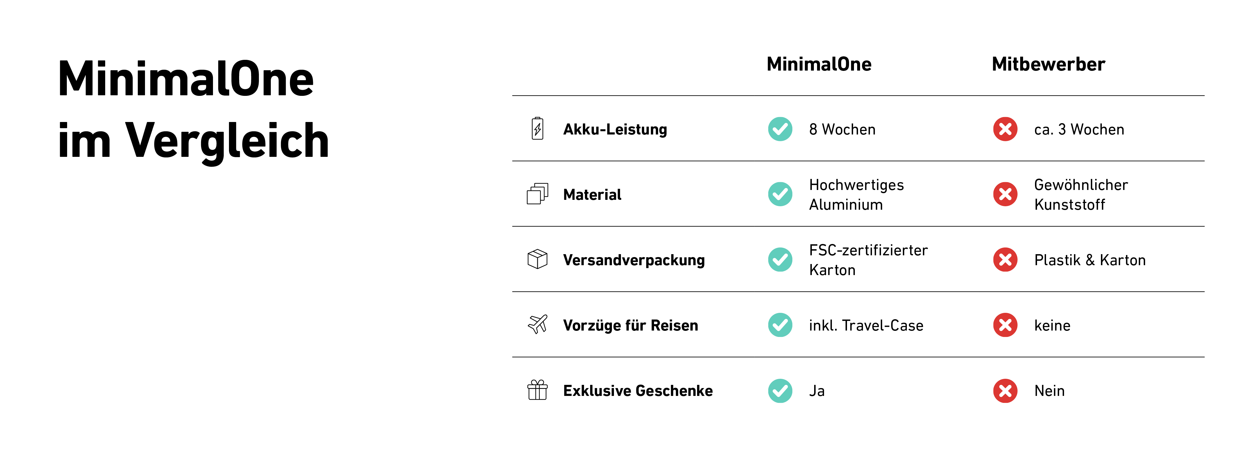Lade Deine MinimalOne einmal voll und geniesse 60 Tage ohne Kabelsalat.