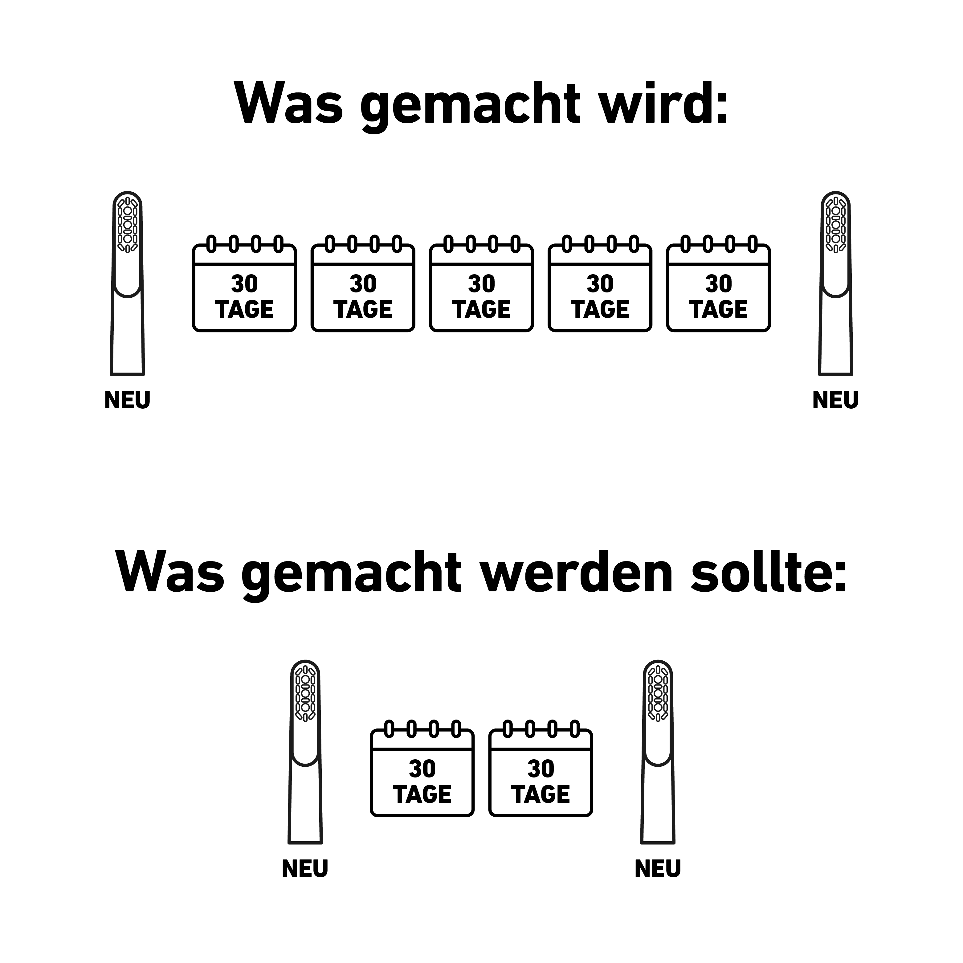 Zahnärzte empfehlen allerdings einen Bürstenwechsel alle zwei Monate.