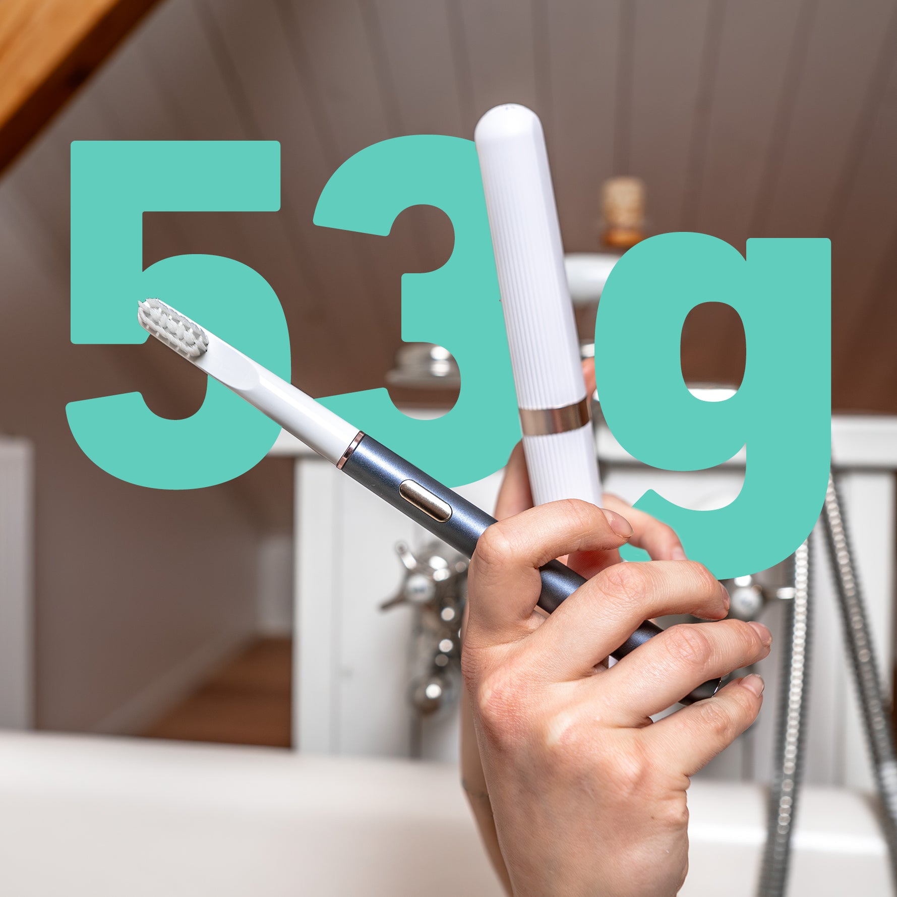Mit nur 53 Gramm liegt sie beim Zähneputzen ganz angenehm in Deiner Hand.