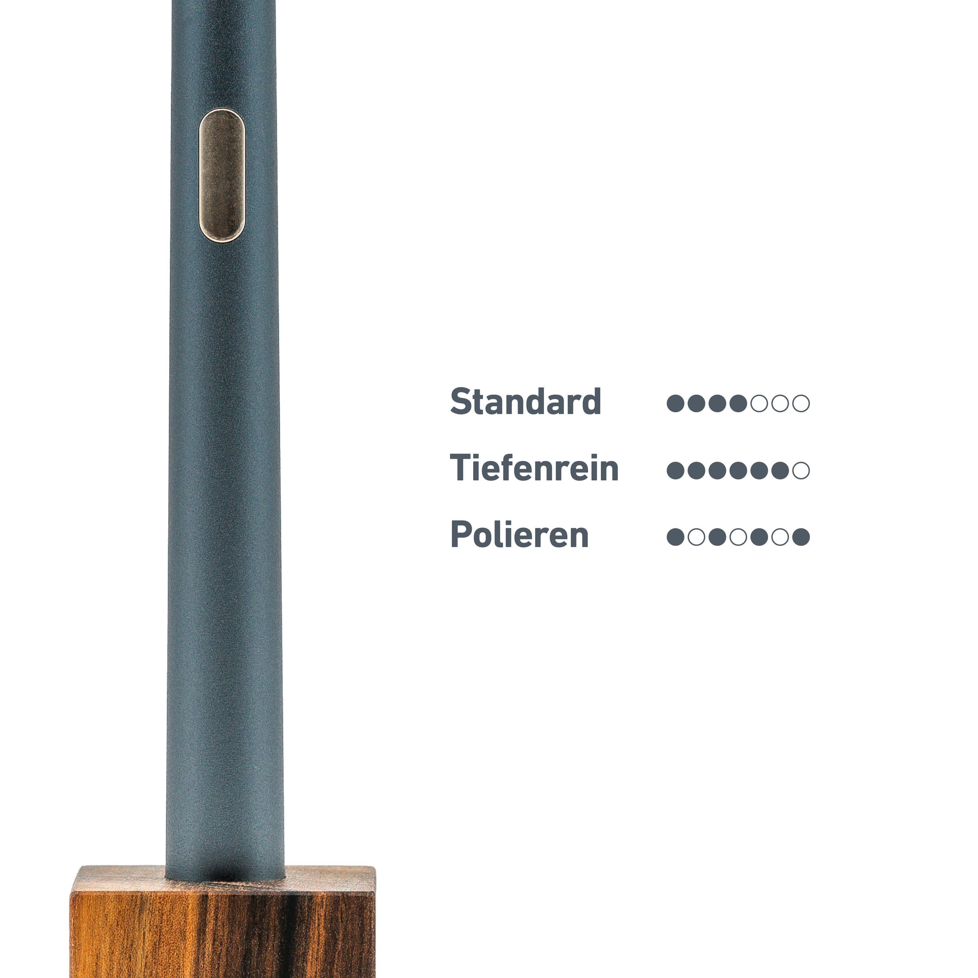 Vor allem die Kontaktstelle an der Unterseite sollte immer trocken sein, da Wasser und Zahnpastareste die Kontaktstelle oxidieren lassen können und die Schallzahnbürste dadurch nicht mehr richtig geladen werden kann.