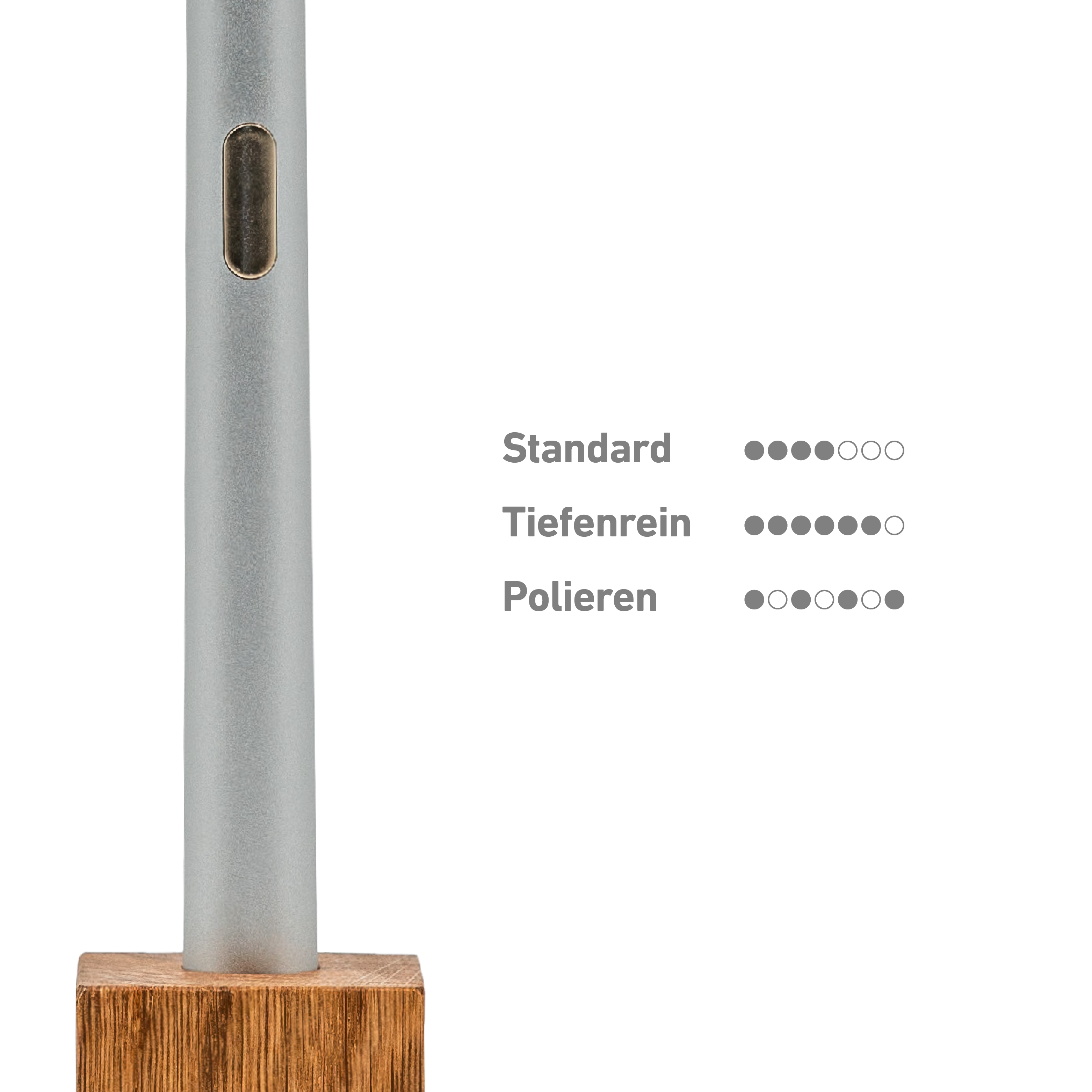 Die MinimalOne wird standardmässig mit zwei mittelharten Bürstenköpfen geliefert. Für eine etwas sanftere Reinigung oder empfindlicheres Zahnfleisch empfiehlt sich unser sanfter Bürstenkopf.