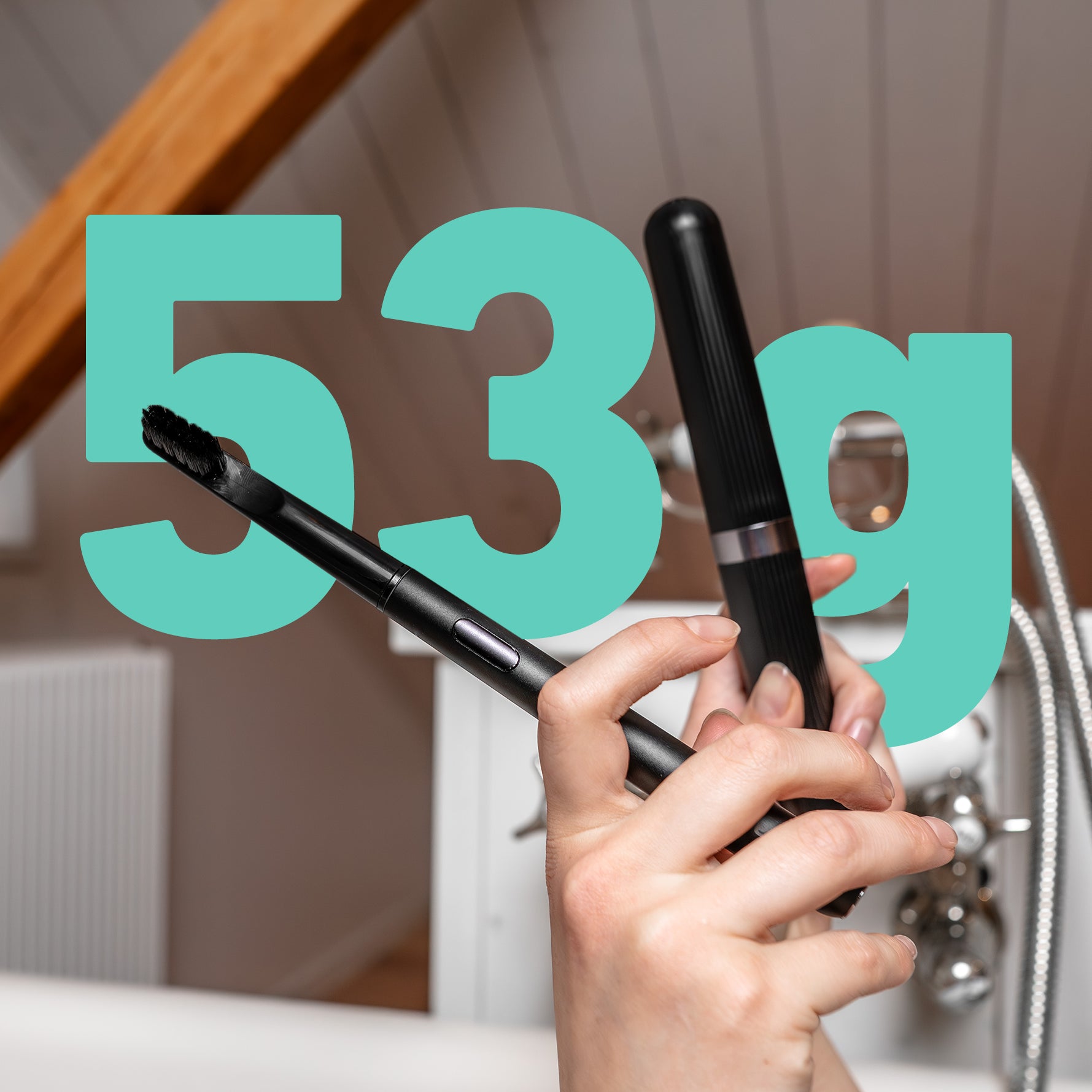 Mit nur 53 Gramm liegt sie beim Zähneputzen ganz angenehm in Deiner Hand.
