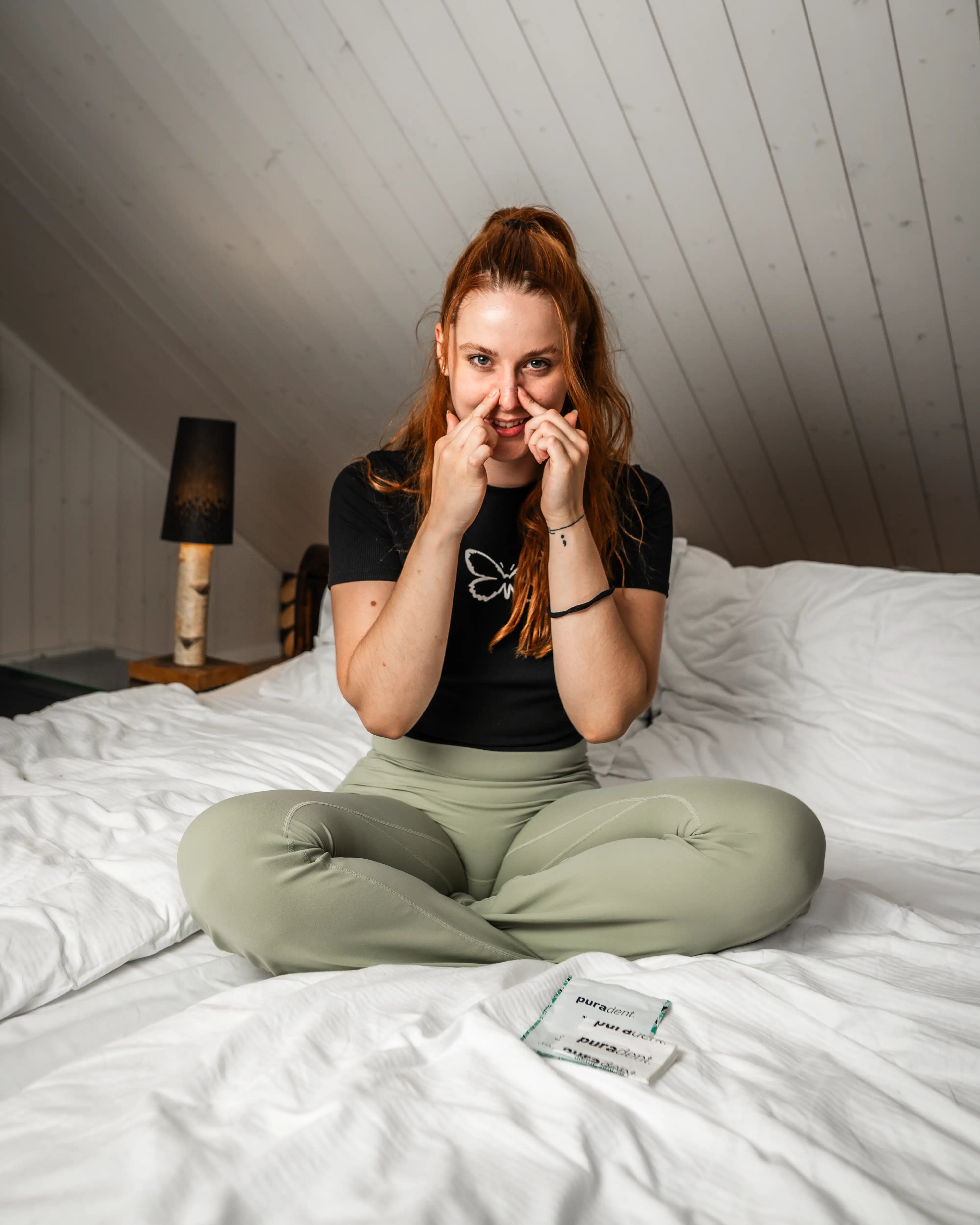 Nasenatmung hilft, Zahnfehlstellungen und Zahnfleischentzündungen zu verringern und schützt den Mundraum vor Bakterien und Viren, was insgesamt positiv auf die Zähne wirkt.